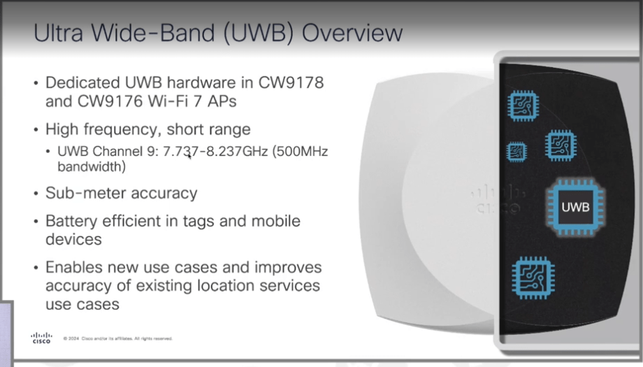 The next big thing was the announcement that the Cisco Wi-Fi 7 APs have dedicated hardware for UWB (Ultra Wide-Band).