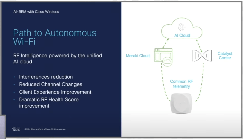 Cisco has implemented a better, more automated Radio Resource Management which leverages AI to be more efficient, cause less disruptions, and greatly reducing changes during peak hours.